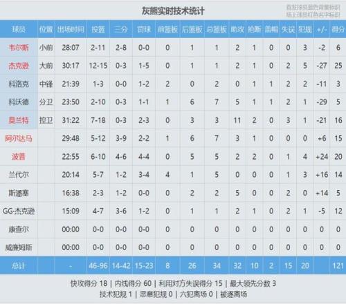 莫兰特上半场7中2,仅得6分3助攻2失误,正负值-22。东契奇8中2,得到13分4板4助2断4失误。詹姆斯10中6拿到17分6板3助3失误,拉拉维亚9中7砍下18分5板1助0失误。第三节陷入拉锯战,湖人拉不开比分,灰熊也无法反超。